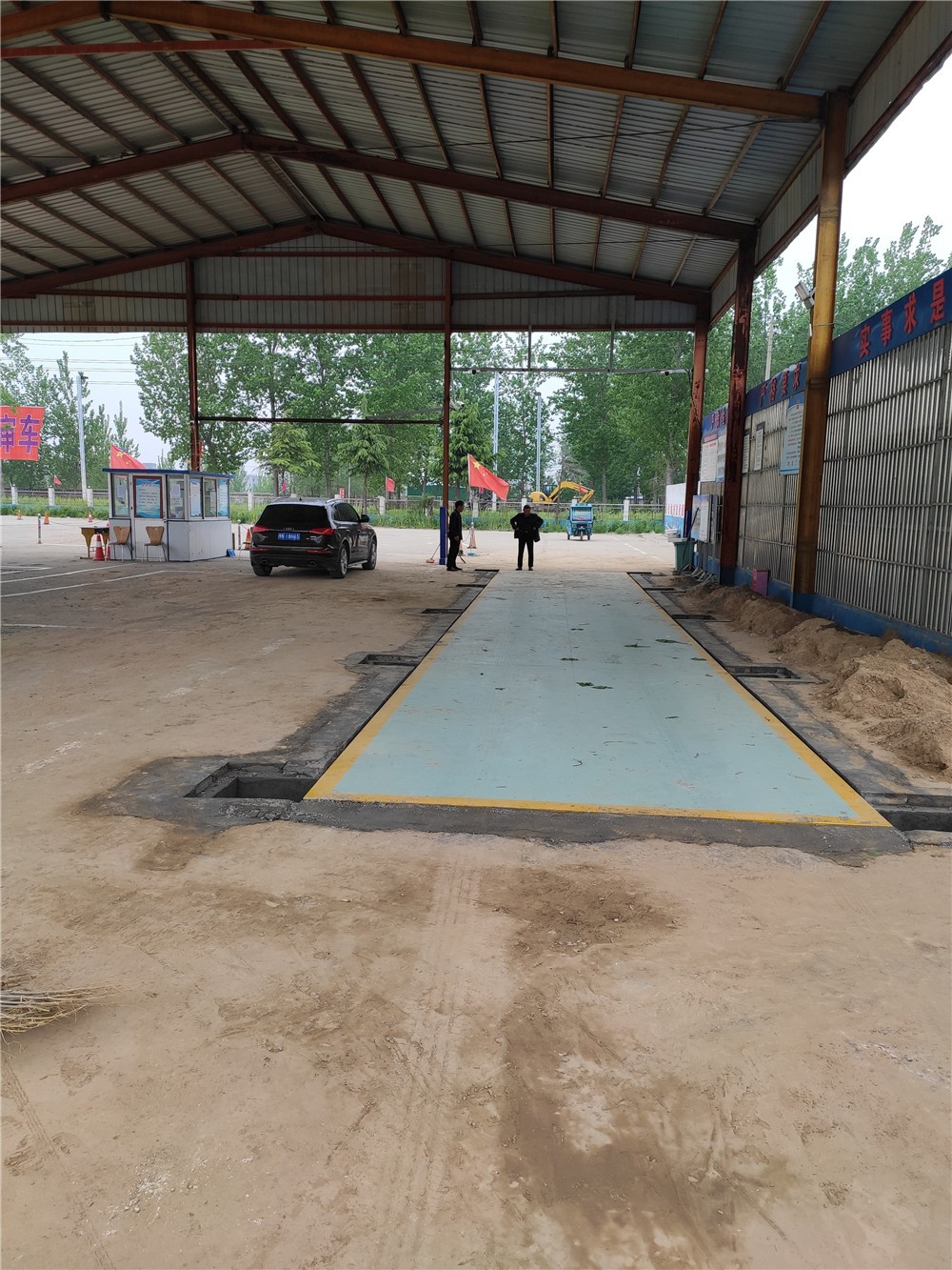 采購(gòu)背景:商丘民權(quán)縣迅安機(jī)動(dòng)車檢測(cè)站位于民權(quán)縣冰熊大道中段南側(cè),主營(yíng)機(jī)動(dòng)車安全技術(shù)檢驗(yàn),為解決來檢車輛過磅稱重問題,訂購(gòu)了中原恒瑞地磅廠3x18m定額200噸電子汽車衡,現(xiàn)電子汽車衡已安裝完成并投入使用。