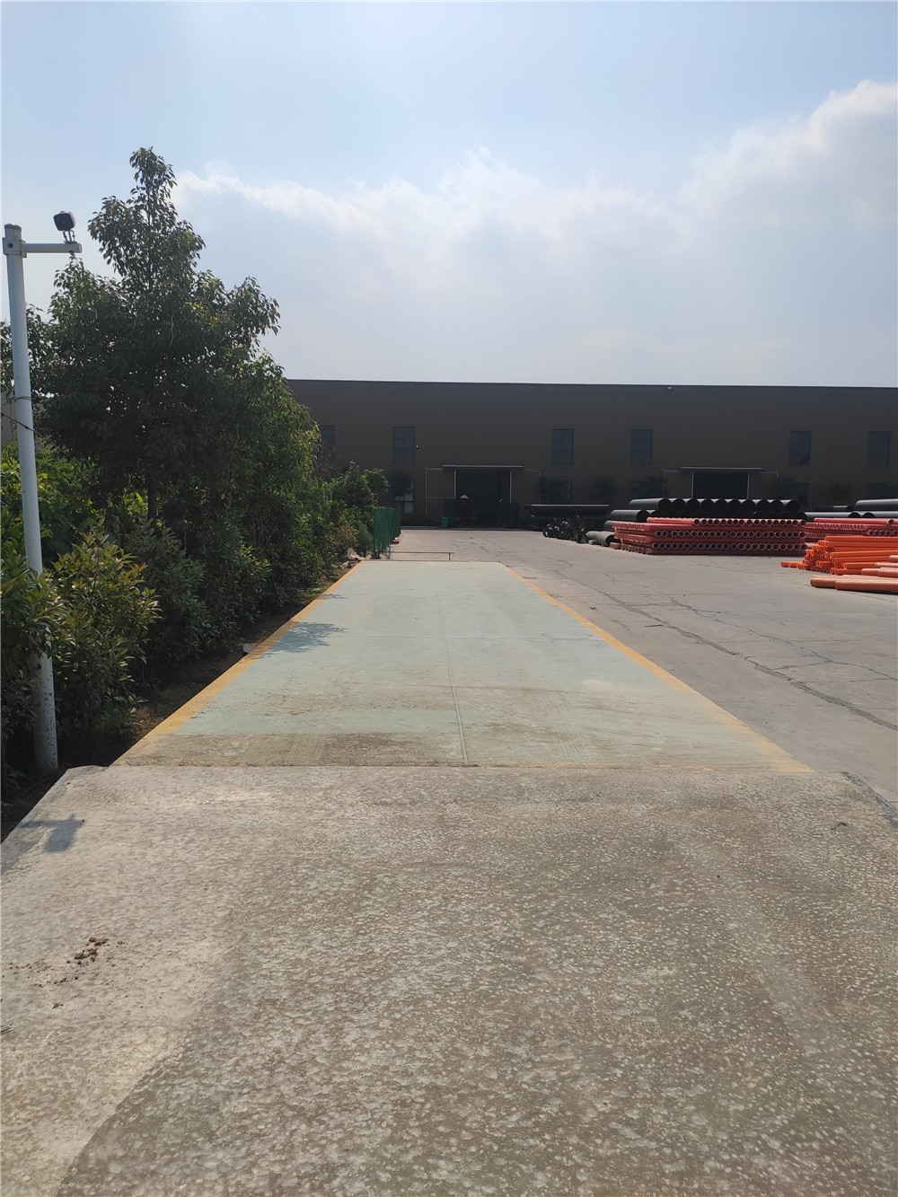 采購背景:瑞騰管業(yè)集團位于開封尉氏縣新尉工業(yè)園區(qū),主營塑料管材、型材、管件加工;塑料制品、建材、塑料原料、五金交電、金屬材料、百貨銷售;從事貨物及技術進出口業(yè)務。廠區(qū)內有大量原材料及產成品進出廠需要計量稱重,對比多家地磅廠地磅后,訂購了中原恒瑞地磅廠3x16m定額100噸電子汽車衡,現(xiàn)電子汽車衡已安裝完成并投入使用。