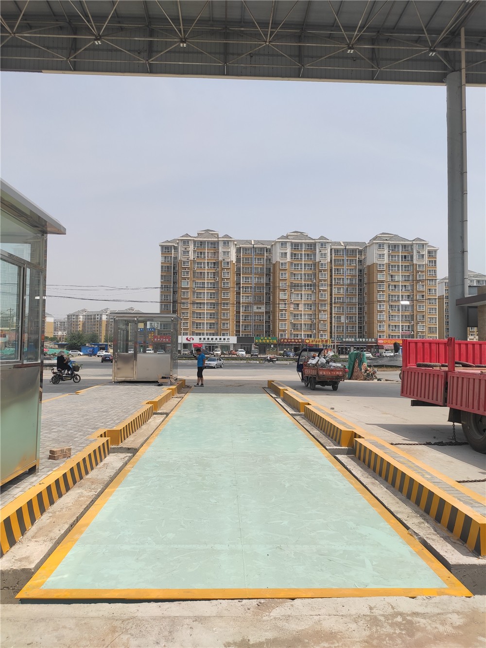 采購背景:安陽豫北蔬菜批發(fā)市場位于安陽市文峰區(qū)S301(舊)與京港澳高速交叉路口往東約100米(鴻泰苑西南側(cè)約50米),是一家以蔬菜交易為主,副食品、瓜果、農(nóng)藥、農(nóng)膜等農(nóng)資產(chǎn)品為輔、批零兼營、品種豐富的大型綜合批發(fā)交易市場。大量蔬菜及農(nóng)副食品進(jìn)出市場需要計(jì)量稱重,對比多家地磅廠地磅后,訂購了2臺(tái)中原恒瑞地磅廠3x18m定額100噸電子汽車衡,地磅安裝于批發(fā)市場大門處,實(shí)現(xiàn)了貨車一進(jìn)一出雙向進(jìn)出計(jì)量稱重,現(xiàn)電子汽車衡已安裝到位并投入使用。