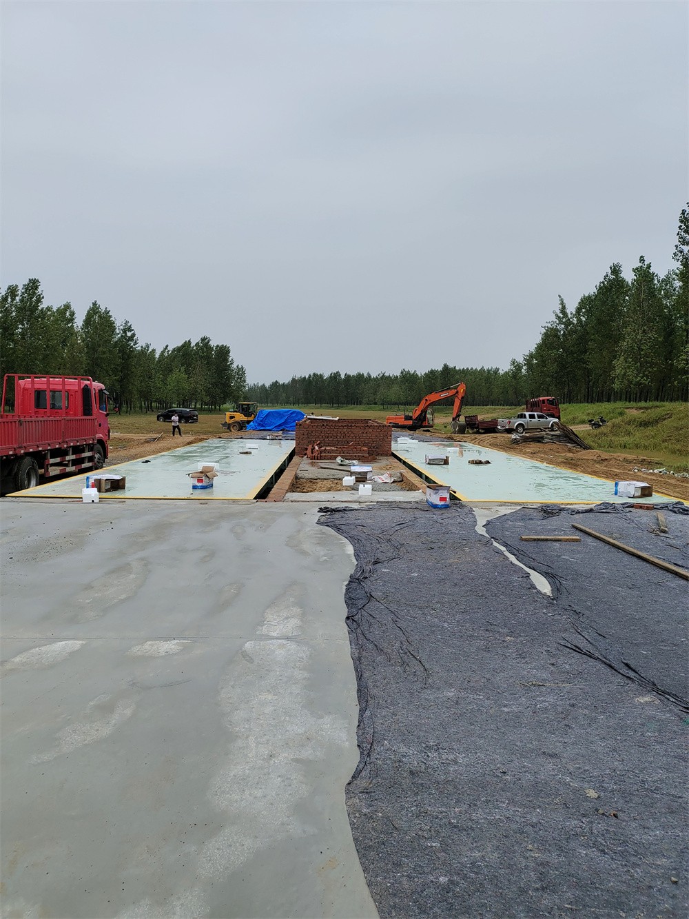 信陽商城上石橋李湖村河沙廠150噸雙向地磅施工案例