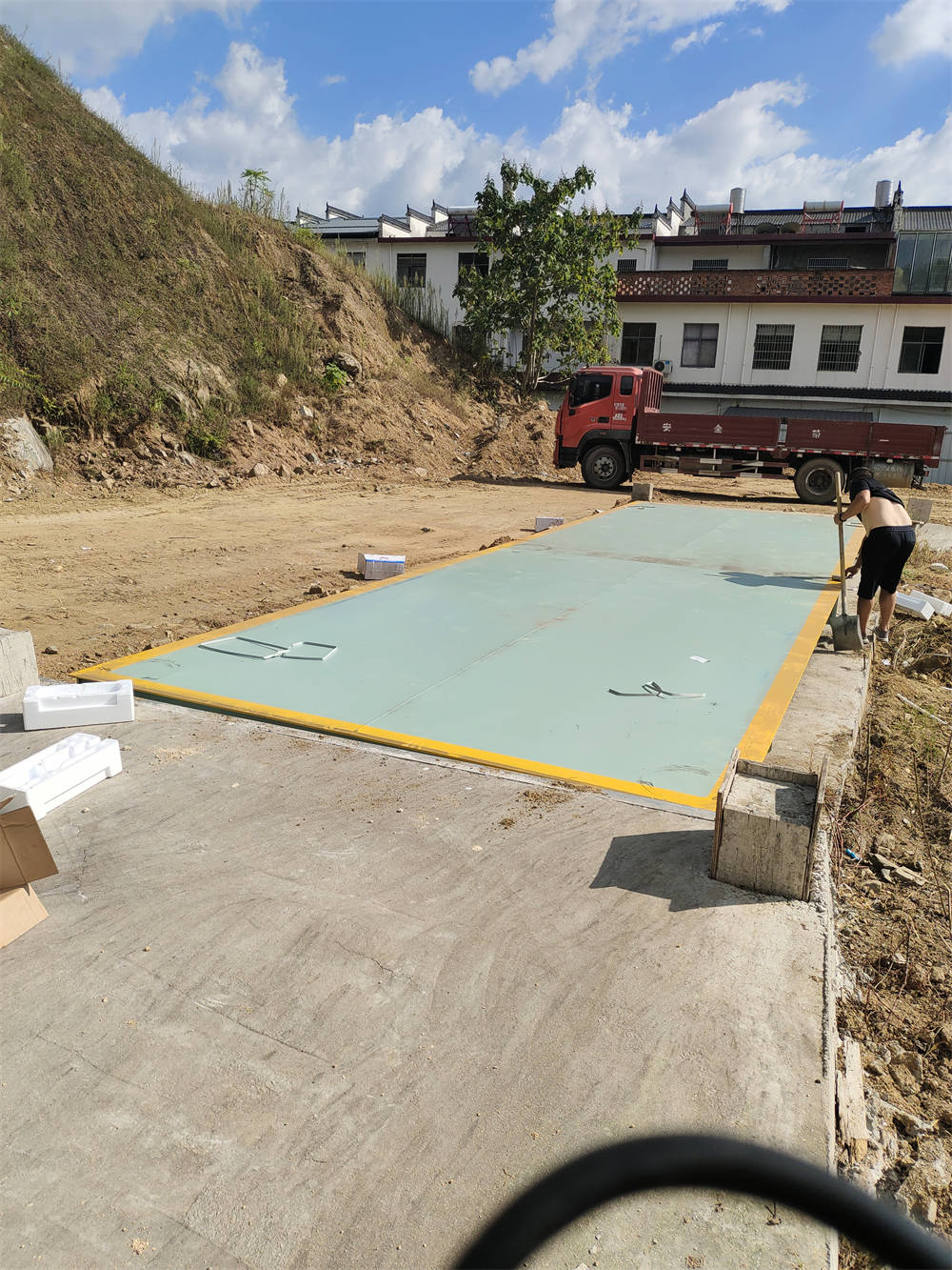 信陽商城官畈店河沙廠100噸地磅施工案例